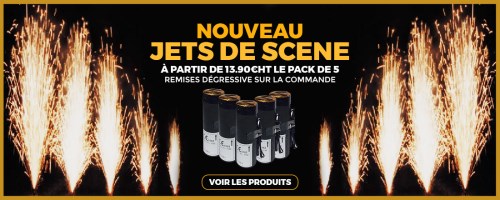 Les packs jets de scène sont le produit idéal pour tous ceux qui souhaitent utiliser les effets visuels de manière coordonnée. Avec eux, vous serez l'artificier en chef de vos soirées ! Vous pouvez choisir différents packs en fonction de l'effet recherché. Durée de la pyrotechnie, couleur e la gerbe, hauteur de l'effet, il y en a pour tous les goûts. Vous trouverez forcément le votre!