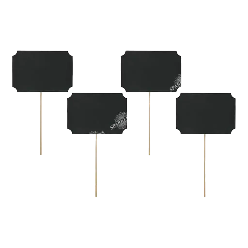 Marque Table sur bâton, noirs, avec un champ de texte libre, idéals pour les numéros de table ou pour marque place, de la taille 11x8 centimètres. Lot de 4