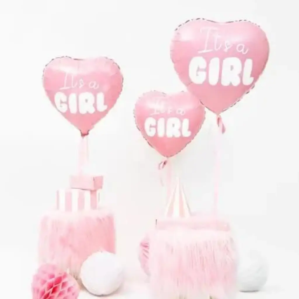Ballon en forme de coeur de couleur Rose avec une inscription "It's a Girl"