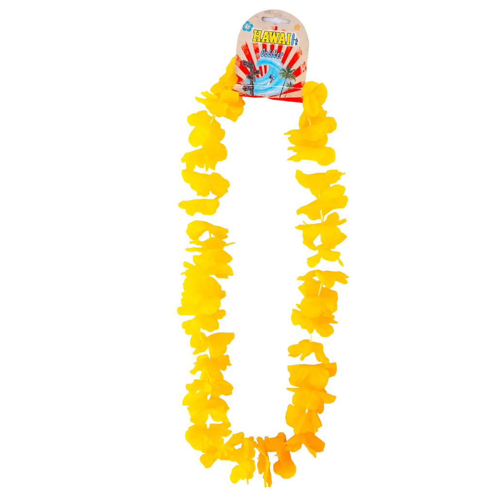 Doté de 36 paires de fleurs jaunes éclatantes, ce collier hawaïen est confectionné en plastique de haute qualité pour une durabilité optimale. Où que vous soyez, procurez-vous à prix réduit cet accessoire de fête via notre boutique en ligne d'articles de fête. Quelle que soit votre tenue, démarquez-vous avec ce collier fluo aux tons brillants. Que vous vous prépariez pour un Carnaval de Nice, un festival de Cannes, ou un anniversaire, ce collier hawaïen jaune ajoutera une touche de gaieté à votre style !