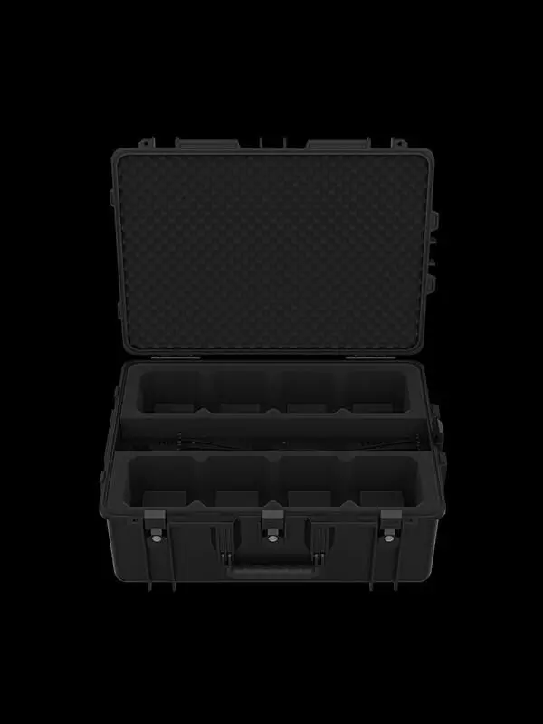 Freedom Charge 8P est une mallette de transport à roulettes qui charge jusqu’à 8 projecteurs Freedom Par simultanément. Son matériau en polypropylène solide est résistant à l’eau et aux chocs et son intérieur moulé sur mesure garantit un transport sans dommage. Des embases de chargement facilitent la manipulation, sans besoin de câbles d’alimentation individuels. Des roulettes robustes et une poignée télescopique vous assurent un transport sans stress. Plusieurs loquets à l’épreuve des enfants, ainsi que la possibilité d’ajouter des cadenas réduisent les intrusions indésirables. Produits vendus séparément.
