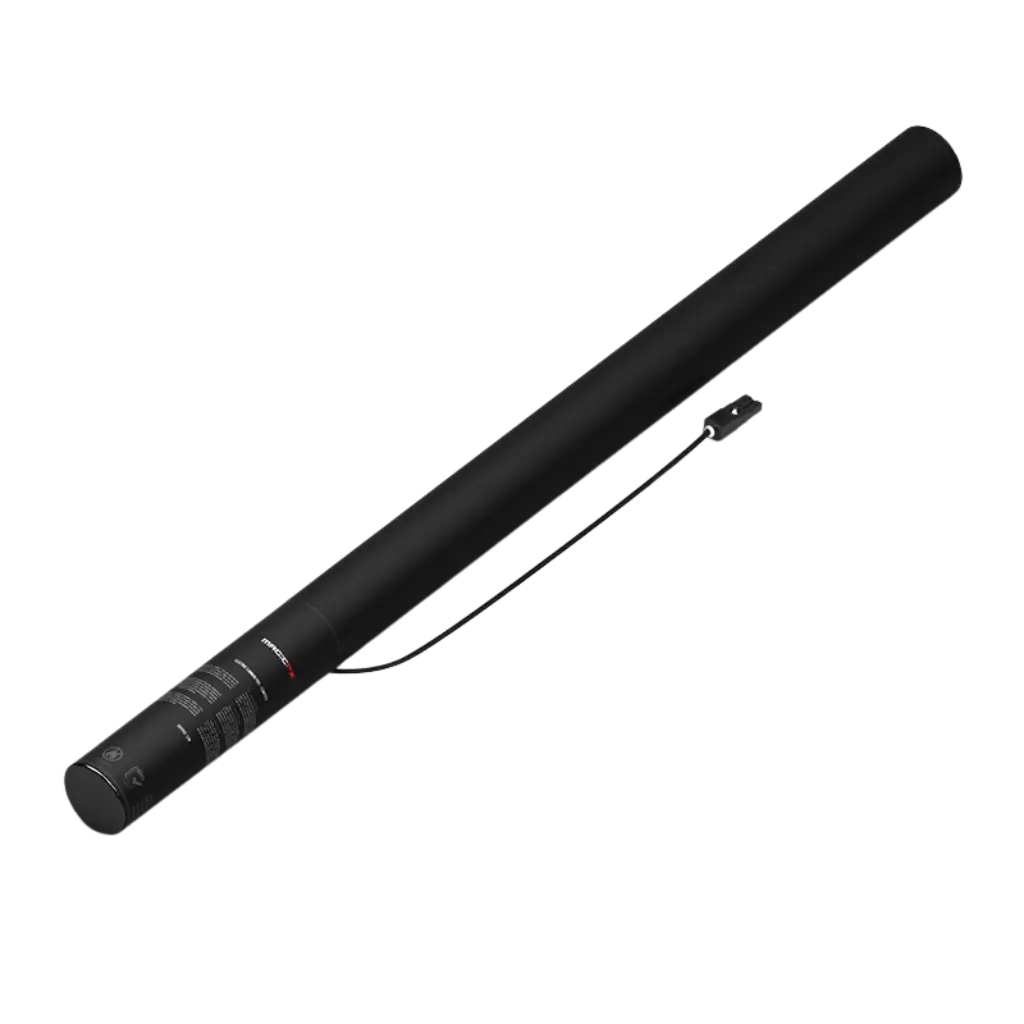 Ce canon à confettis électrique de Magic FX ne peut être utilisé qu'une seule fois. La partie inférieure dispose d'une cartouche de gaz sous pression. Le canon affiche une longueur de 80 cm et peut être tiré à l'aide du Magic FX Power Shots.